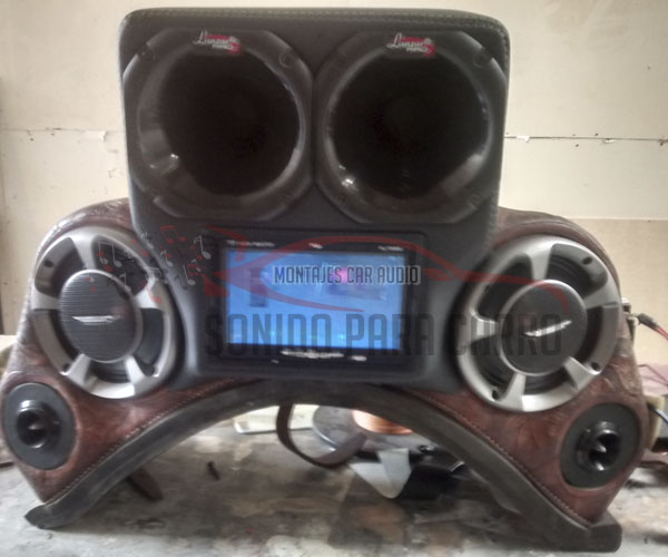 Pieza de lujo, tapizada en vinilcuero, que contiene bajos, tweeters, cornetas, entre otros, dando así una gran calidad de sonido en una pieza tan pequeña.