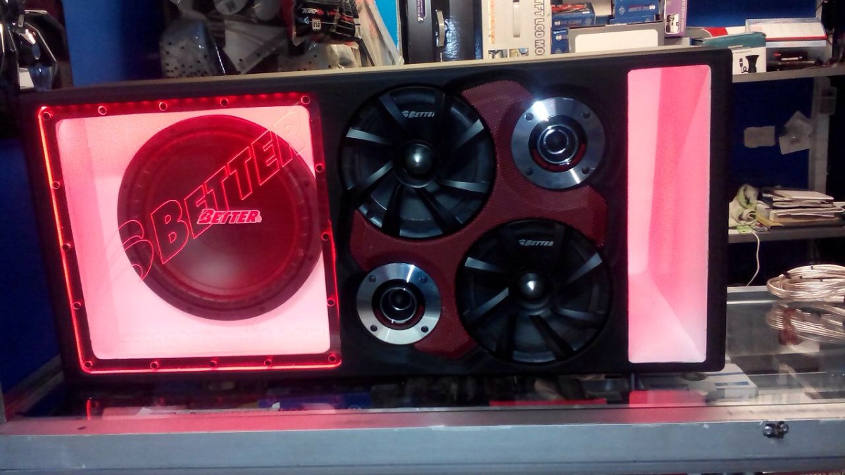 Caja acústica especialmente diseñada para 2 medios y 2 tweeters y un subwoofer Better, ventilada o con porto para mayor profundidad en la frecuencia subgrave, pintura en poliuretano y tapizada en materiales sintéticos de alta calidad, además su estilo muy original cuenta con un acrílico en la parte frontal de color rojo y luz led para producir una bonita y fuerte luz durante la reproducción del sonido en la caja.